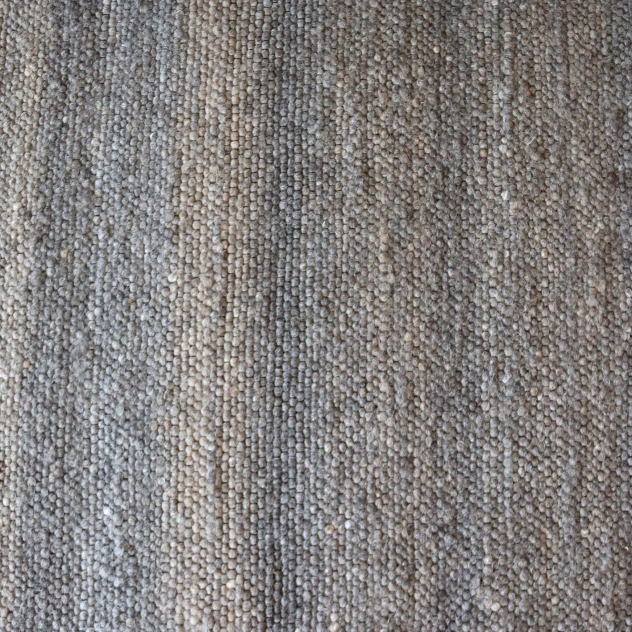 Käsitsi valmistatud farmi alpakade villast pehme hallikas-pruunikas triipu vaip.