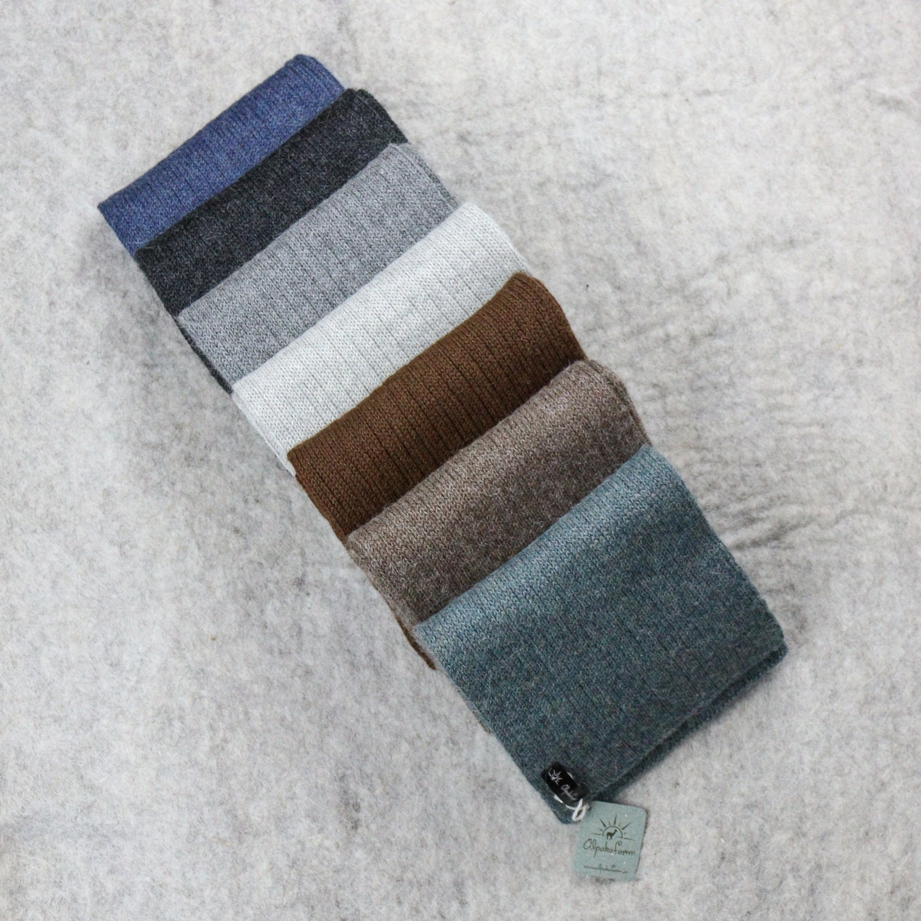 Klassisk lång varm herrscarf vävd av 100 % alpackaull.